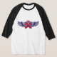 Camiseta Básica, Mangas Raglan 3/4, Branco/Preto, Adulto M