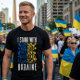 Camiseta Eu apoio a Ucrânia. Tridente da Ucrânia.