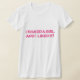 Camiseta branca com rotulação cor-de-rosa e sombreamento cinzento. O subtítulo diz: EU BEIJEI UMA MENINA E EU GOSTEI D!
