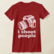 Eu disparo em pessoas! Obteve sua atenção? Relaxe agora, eu disparo em pessoas, mas com uma câmera. Parece como actualmente aquela que todos é um fotógrafo. Mas, eu não posso responsabilizá-los. Quem não ama a fotografia? Com um produto goste de uma câmara digital que está facilmente disponível, você não pode ajudar mas ser uma. Eu tenho este design em preto, em vermelho, e o azul. Eu igualmente coloquei este design em uma variedade de produtos que variam dos t-shirt às canecas aos botões. Assim, obtenha seu agora e mostre ao mundo o que você faz…