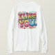 A design da camiseta "Eu gosto de você" apresenta uma tipografia divertida e desenhada à mão com uma vibração divertida e amigável. O texto é arranjado em estilo casual e fluido, usando cores arrojadas e vibrantes que tocam o olho. Ao redor das palavras, rabiscos alegres como corações, estrelas ou smileys face podem estar espalhados, acrescentando uma energia positiva e otimista ao design. O sentimento geral é reluzente e convidativo, fazer perfeito para expressar afeto de uma forma bonitinha e na moda.