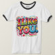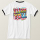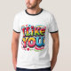 A design da camiseta "Eu gosto de você" apresenta uma frase divertida desenhada à mão em letras arrojadas e peculiares. O texto é o ponto focal, escrito de forma casual e amigável com cores vibrantes, dando-lhe uma vibração divertida e acessível. Ao redor das palavras, há pequenos rabiscos como corações, estrelas ou smileys face para melhorar a mensagem positiva e leve. O design sente-se fresco e jovem, perfeito para espalhar positividade e boas vibrações.
