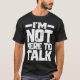 Todos temos um amigo que chega à academia e fala sobre a vida, as crianças e o trabalho. Mas você não veio aqui para lamentar sobre isso, você veio para suar sobre isso. Agarre esta camisa hilária para que todos saibam "Não estou aqui para falar".