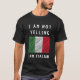 Design de inspiração na bandeira italiana com uma reviravolta divertida, destacando com humor que falar apaixonadamente em italiano não significa gritar.