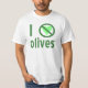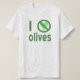 Odeio azeitonas. O design usa letras verdes, um coração verde e o sinal internacional "NÃO" para ler "Odeio azeitonas". Para aqueles que não os "coração", realmente não gostam deles, mas têm senso de humor (humor), adoram rir e ter seu osso engraçado marcado.