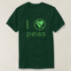 Eu odeio ervilhas. O design usa letras verdes, um coração verde e o sinal internacional de "NÃO" para ler "Eu odeio ervilhas". Para aqueles que não "amam" elas, realmente as desaprova, mas têm senso de humor, amam rir e têm o osso do humor tickled.