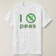Eu odeio ervilhas. O design usa letras verdes, um coração verde e o sinal internacional de "NÃO" para ler "Eu odeio ervilhas". Para aqueles que não "amam" elas, realmente as desaprova, mas têm senso de humor, amam rir e têm o osso do humor tickled.