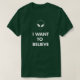 Este é um t-shirt inspirado X-Arquivos com uma cabeça estrangeira e as palavras "que eu quero acreditar"