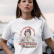 Uma camisa retrô legal de uma mulher de roupão, com as palavras "Eu seria uma pessoa matinal, se a manhã fosse ao meio-dia." As cores são acinzentadas com castanhos, verdes e vermelhos.