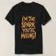 Uma ilustração desenhada à mão com o texto que eu sou a faísca que você está perdendo! em uma fonte cor laranja e feroz. O texto está estilizado com chamas ao redor de cada letra.