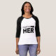 Camiseta feminina mangas raglan 3/4 da Bella+Canvas, Branco/Preto, Adulto G
