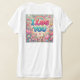"Eu te amo" T-Shirt: Mostre seu amor em estilo! Esta camiseta acolhedora e macia apresenta um design de "Eu te amo", perfeito para expressar afeto a alguém especial. Com uma fonte minimalista, elegante e disponível em múltiplas cores, é uma peça simples, mas significativa para qualquer armário. Ideal para presentes românticos, aniversários, ou só porque!
