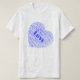 Uma nuvem de palavra azul na forma de um coração, cheia de palavras relacionadas ao amor e afeto. Uma maneira clássica e simples de expressar seu amor com um coração vermelho e as palavras "Eu te amo".