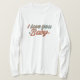 A design da camiseta apresenta a frase "Eu amo você, bebê" em um roteiro divertido e escrito à mão. As palavras estão provavelmente centradas no peito, possivelmente com pequenos corações ou outro embelezamento perto do "b" ou do "y" em "baby". A fonte pode ser ousada e ligeiramente borbulhante para um toque bonito, jovem, ou mais elegante e cursivo para um toque romântico. O design geral é simples e direto, deixando a mensagem falar por si mesmo amor por você.