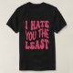 Um design lúdico e humorístico com dois personagens de desenho animados com uma bolha de fala dizendo "Eu te odeio Menos". Perfeito por mostrar afeto de uma forma leve.
