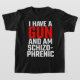 Camiseta eu tenho uma arma e sou esquizofrênico