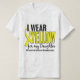 Pnha sobre sua fita amarela para apoiar sua filha em sua batalha com endometriose comigo vestem o amarelo para meus camisas do apoio da endometriose da filha, roupa, mercadoria, e caracterização dos presentes corajosa e script pias batismais do texto e uma fita amarela da consciência da endometriose.