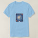 The aesthetic leans into "Gravity-Wave Minimalism." Instead of a dark, heavy space scene, the artwork uses a palette of soft teals, muted amethysts, and warm golds that bleed into the light fabric of the shirt (ideal for heather grey, cream, or white).