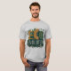 A Eco Evolution t-shirt design apresenta a frase "Eco Evolution" em caracteres vibrantes e multicoloridos. O design incorpora elementos inspirados na natureza, como folhas, flores e animais, simbolizando a interconectividade de todos os seres vivos e a importância de preservar o nosso planeta. A estética global é lúdica e colorida, refletindo o otimismo e a esperança associados à sustentabilidade ambiental.