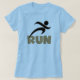 Se você estiver à distância correndo, seja apenas treinando para seu primeiro 5K ou você tiver realizado um 5K, 10K, meia maratona, ou maratona, você vai adorar nossas T-shirts RUN, capuzes, tampas de tanques, botões, canecas, guardas, e muitos outros itens de roupa de corrida com um corredor de silhueta preto e texto bronzeado.