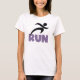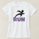 Tirando T-shirts, canecas, bolsas, guardas, topos de tanques, capuzes, e outros roupa e presentes para corredores com um corredor de silhueta preto e texto roxo que lê RUN. Esses itens de roupa RUN e presentes são excelente para qualquer um que esteja treinando para um 5K, qualquer um que apenas ame correr, ou alguém que já tenha realizado várias maratonas!