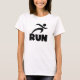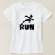 Tirando T-shirts, canecas, bolsas, guardas, topos de tanques, capuzes, e outros roupa e presentes para corredores com um corredor da silhueta preta e texto preto que lê RUN. Esses itens de roupa RUN e presentes são excelente para qualquer um que esteja treinando para um 5K, qualquer um que apenas ame correr, ou alguém que já tenha realizado várias maratonas!
