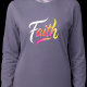 This image is special for its vibrant, high-energy presentation of the word "Faith". The design employs a dynamic, glossy script that looks like liquid Pop Art, transitioning from white to a bright neon pink and yellow gradient. The stylized feather elements enhance the flowing, airy feel of the design. It is a powerful graphic for modern faith-based apparel, inspirational posters, or contemporary religious art.