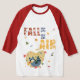 Cute raccoon swinging with colorful fall leaves — perfect for autumn lovers.