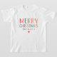 Esta camisa doce e divertida de crianças de Natal é um lugar para você adicionar um nome, com "Feliz Natal" em tipografia brilhante colorida. Disponível em todos os tamanhos, para o design perfeito para suas camisas de Natal da família.