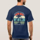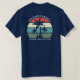 Camisas de férias de férias de reunião de família de verão bonitas para adultos vestirem num cruzeiro ilha ou uma viagem à beira-mar tropical. Possui belas palmeiras em frente a um pôr do sol bonito. Camisetas personalizadas para todos no seu grupo. Adicione seu nome no bolso e personalize a parte traseira com seu sobrenome ou ano.