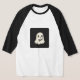 Camiseta Básica, Mangas Raglan 3/4, Branco/Preto, Adulto M