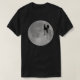 Um homem monta uma bicicleta do farthing da moeda de um centavo após a lua, um segredo especial é dobrado em sua cesta do guiador.