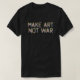 Design de declaração a negrito com cores vibrantes e formas dinâmicas, combinando criatividade e paz com a mensagem: Faça arte, não guerra. Perfeito para espalhar positividade e inspiração artística.