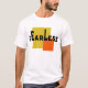 Showcase a contemporary, corporate, and highly memorable brand identity with this unique T-shirt design. It prominently features the text 'Earle' arranged across a vibrant yellow square, with an orange square overlapping part of the text, creating a dynamic geometric conflict. The entire composition is set against a solid black backdrop, which strongly emphasizes the geometric shapes and the bold, warm color palette (yellow, orange, black). This logo conveys energy, corporate vibrancy, and a modern minimalist feel, making it a strong visual statement for a company, a professional's casual wear, or a brand seeking a contemporary and easily recognizable image. The text is clear and readable despite the abstract arrangement, ensuring effective branding.