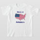 Este design bonito tem uma imagem da bandeira dos Estados Unidos dos Estados Unidos continentais em vermelho, em branco, e o azul. O texto nos azuis marinhos diz "feito em América". Patriótico e bonito!