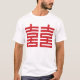 O símbolo chinês "da felicidade dobro" tem suas origens em uma história da dinastia de Tang. Tudo que você precisa de saber é que traz a boa fortuna a alguns que a vestirem ou as entrarem o contato com ela.