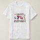 Feliz aniversário de 7. Design de aniversário engraçado e fofo com um lindo ursinho de pelúcia segurando um presente e um lápis engraçado escrevendo os desejos de aniversário. Uma combinação perfeita para roupas, camisas e acessórios.