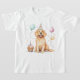 Ótima ilustração de desenho animado do Ouro Retriever cão vestindo um chapéu de aniversário. Perfeito para amantes de animais de estimação ou pais de cães.