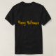 Legal texto de Feliz Halloween amarelo e laranja na frente e atrás. Camisa divertida para vestir no feriado.