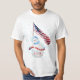 Boneco de neve pequeno bonito e bandeira americana em uma agitação dos flocos de neve em um t-shirt do Natal dos EUA do feriado. Trará um sorriso ao coração e às memórias afeiçoadas a nossos homens e mulheres do serviço militar. Você pode igualmente apreciar cartões de Natal e os presentes com esta harmonização projetam disponível em minha loja. A arte e o design originais pelo Anura projetam o estúdio 2010.