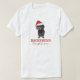Camiseta festiva de natal engraçada, com um cachorro giro e dachshund vestindo um chapéu de Natal vermelho, e a curiosa frase "DACHSHUND through the snow".