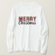 Camisa de design de tipografia de Natal feliz. A feliz está em xadrez de búfalo vermelha e preta e o Natal está impresso a preto. A cópia de retorno tem o ano, mas pode ser personalizada ou excluída se desejar.