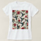 Esta é uma camisa de mulher. Tem um design de padrão de pássaros.
