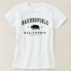 Camiseta branca feminina de Bakersfield com urso cinzento e texto curvo em uma fonte slab. Esta camiseta é ótima se você é de Bakersfield ou para dar como um presente de lembrança para alguém que vai gostar.