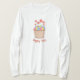 Camiseta feminina de manga longa com ilustração de cesta de vime com flores avermelhadas e ovos de páscoa coloridos. Ideal para dias mais frescos.