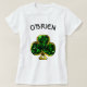 Camiseta feminina do dia de Patrick com Shamrock gravada no apelido Dourado e familiar