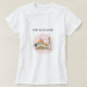 Camiseta Feminina Vibrante Eid Mubarak | Mesquita Ilustrada e Palmeiras | Design de Círculo Rosa Suave | Presente.