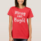 Camiseta gráfica de Feliz e na moda Brilhante, de uso feminino, em um roteiro branco moderno, escovado. A cor da t-shirt vermelha pode ser personalizada.