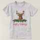 Esta camisa divertida do Holiday apresenta uma bela imagem de uma cabeça de cervo aparecendo de uma tosse verde decorada com um sino e bagas ocas. As galhadas dos veados são decoradas com vários bolbos de árvores de Natal de cor brilhante e padronizados. Abaixo da imagem está um texto vermelho vivo que diz atualmente "Feriados Felizes", mas você pode facilmente mudá-lo para qualquer coisa que quiser. Bonita!