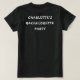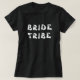 Uma camiseta preta clássica com a tribo da noiva em branco na frente. A parte de trás apresenta mais texto personalizável. Para alterar o nome ou excluir, clique no botão personalizar.